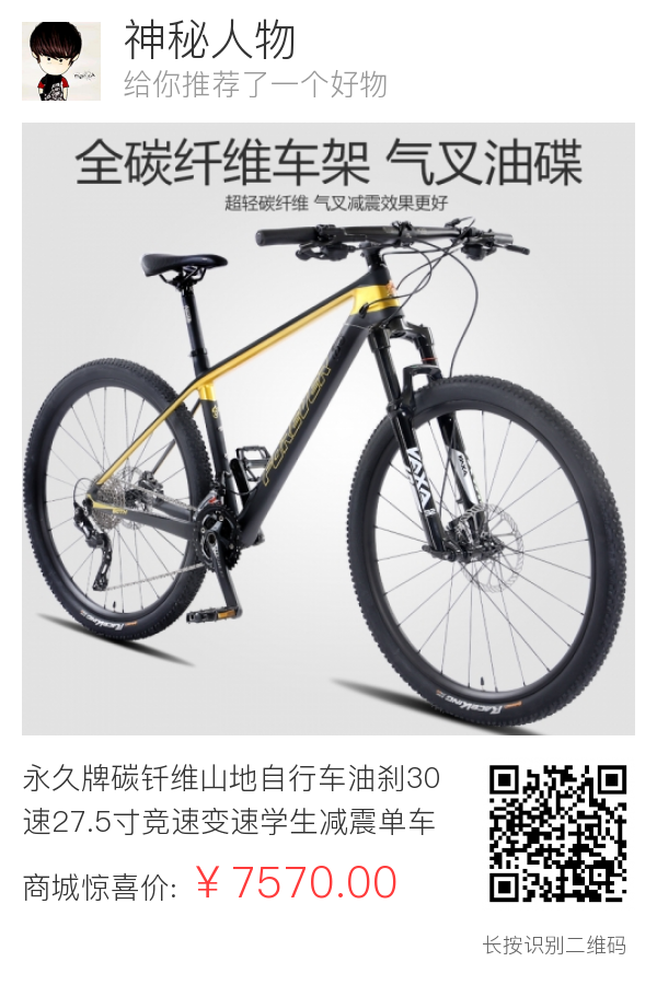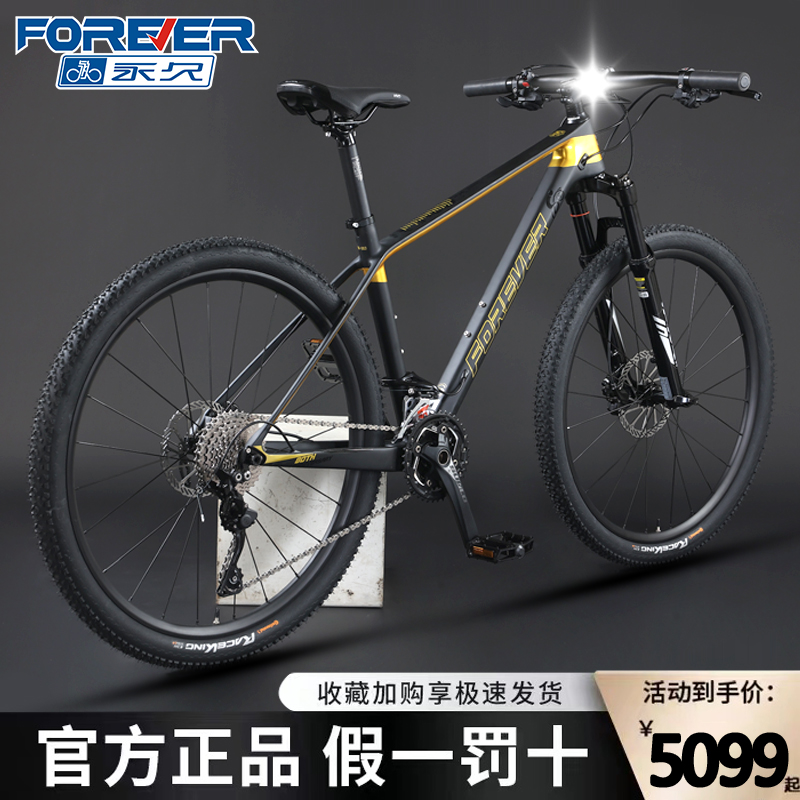 永久牌碳钎维山地自行车油刹30速27.5寸竞速变速学生减震单车