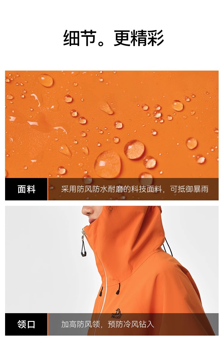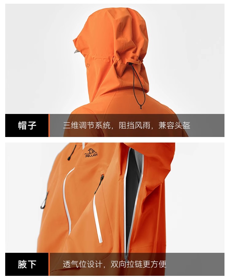 伯希和(Pelliot)单层户外冲锋衣女款秋李薄款防水夹克风衣登山外套12340104黄