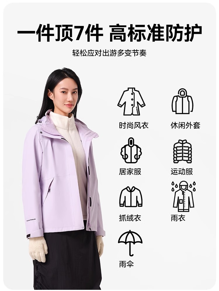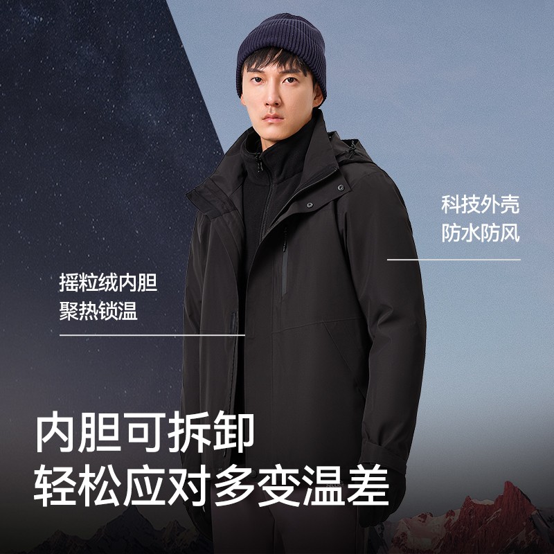 伯希和(Pelliot)[成毅同款]山野户外冲锋衣男女三合一秋冬硬壳外套11340105黑