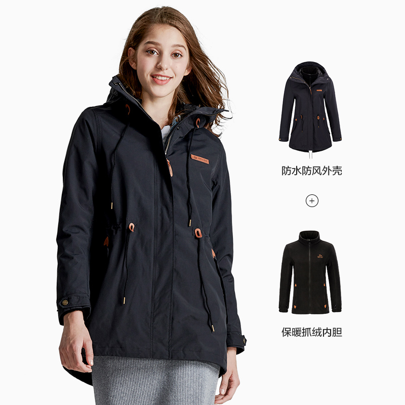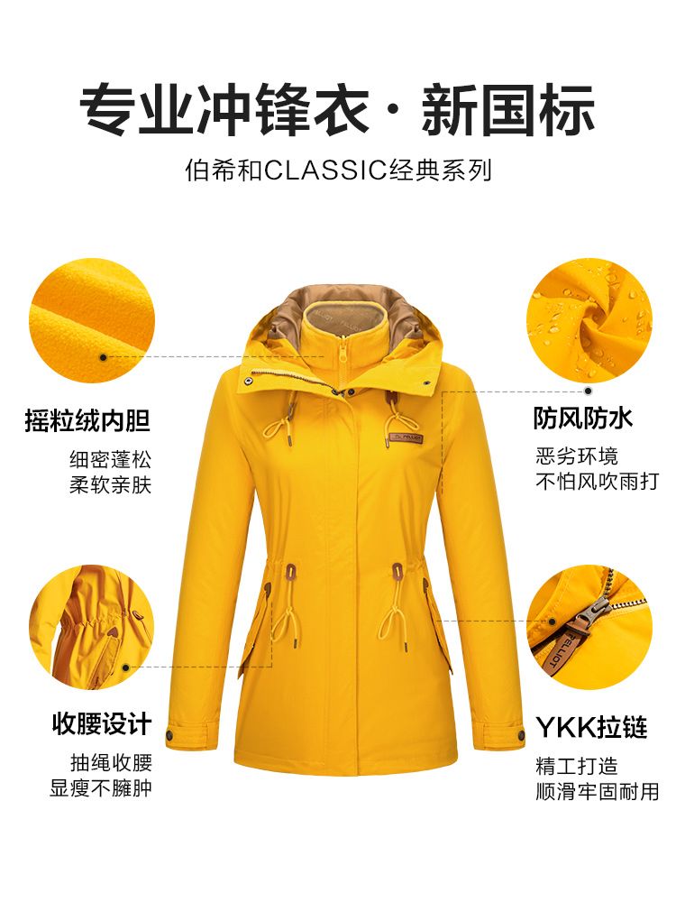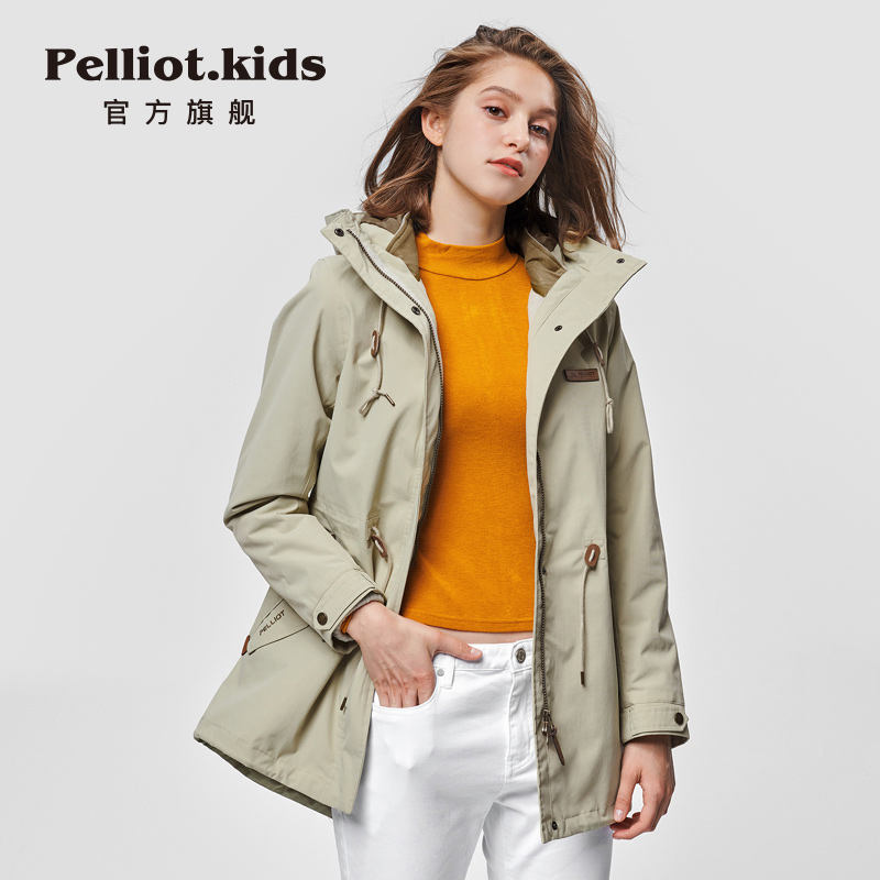 伯希和(Pelliot)冲锋衣女三合一户外秋冬中长夹克防风硬壳登山外套22640110白