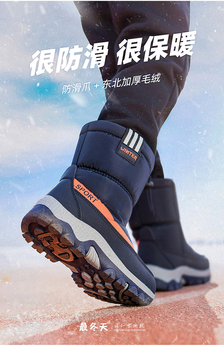 雪地靴男冬季加绒加厚户外防水防滑高帮棉靴东北抗寒登山雪鞋女款