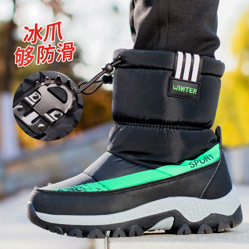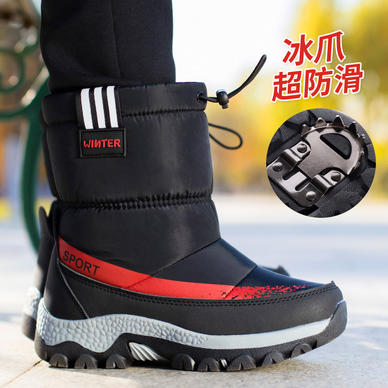 东北儿童雪地靴女童防水防滑男童棉鞋冬季加绒加厚休闲靴子冰爪鞋
