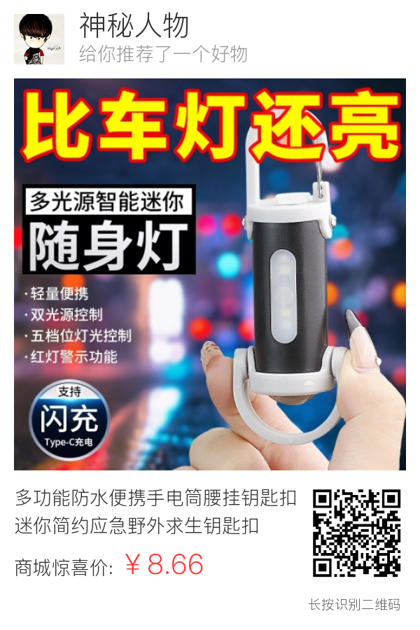 多功能防水便携手电筒腰挂钥匙扣迷你简约应急野外求生钥匙扣