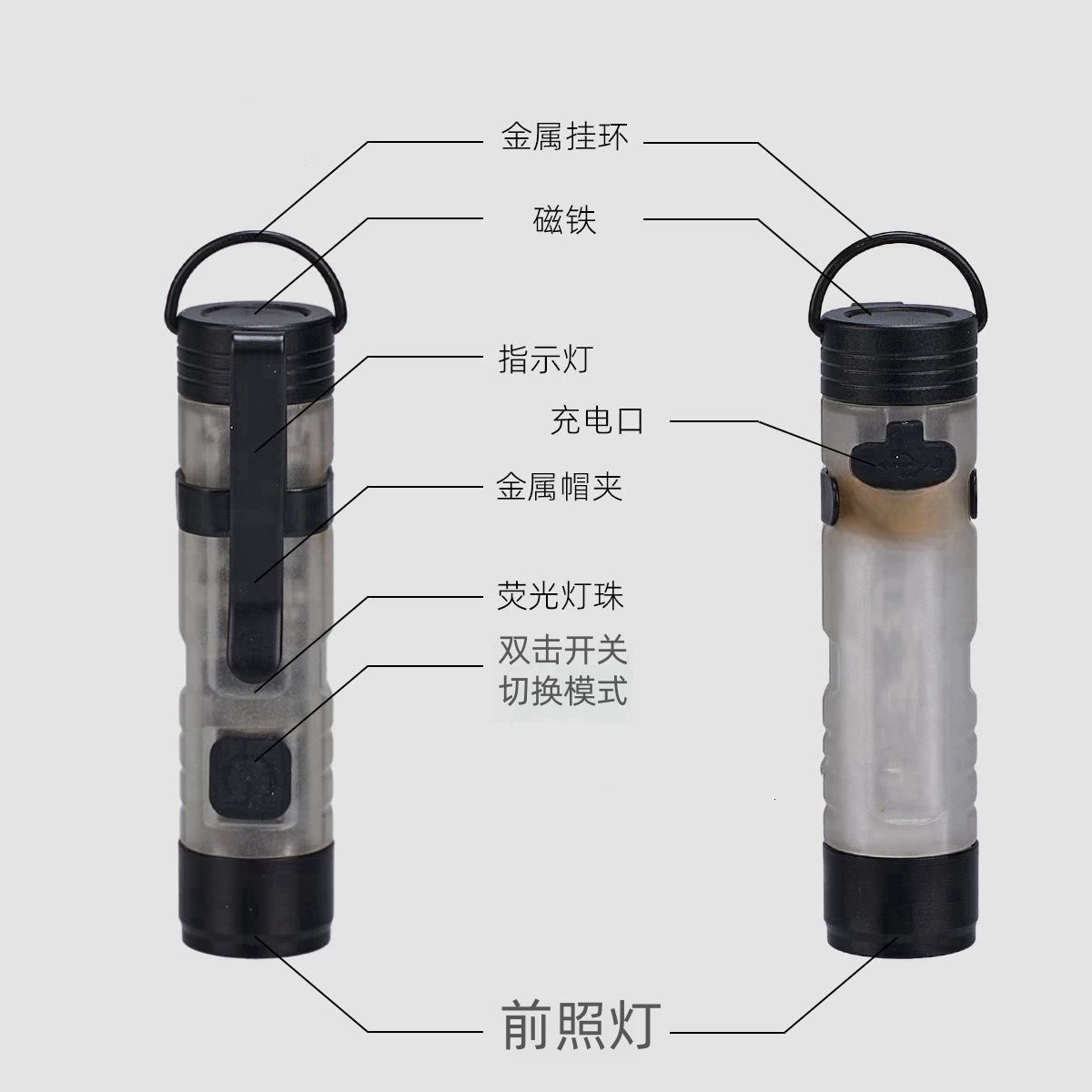 gopeak口袋迷你手电户外钥匙夹帽氛围led长续航救灾应急5050小灯