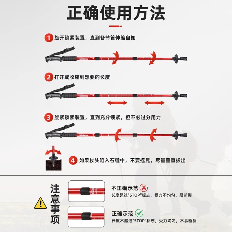 碳纤维儿童登山杖手杖轻便铝合金伸缩爬山拐杖户外登山棍徒步装备