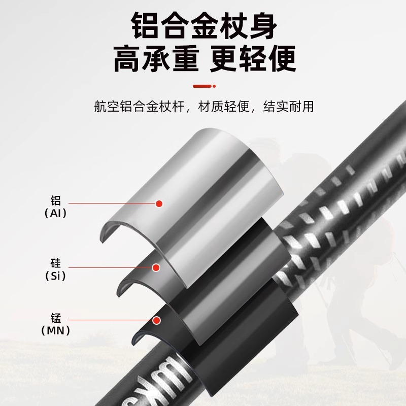登山杖折叠铝合金伸缩便携滑雪防滑拐杖老人拐棍户外爬山徒步装备