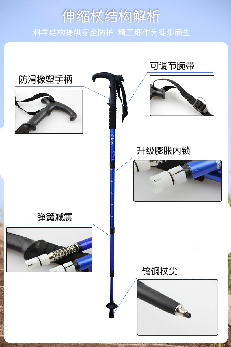 登山杖折叠铝合金伸缩便携滑雪防滑拐杖老人拐棍户外爬山徒步装备