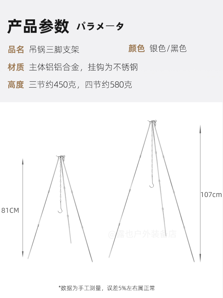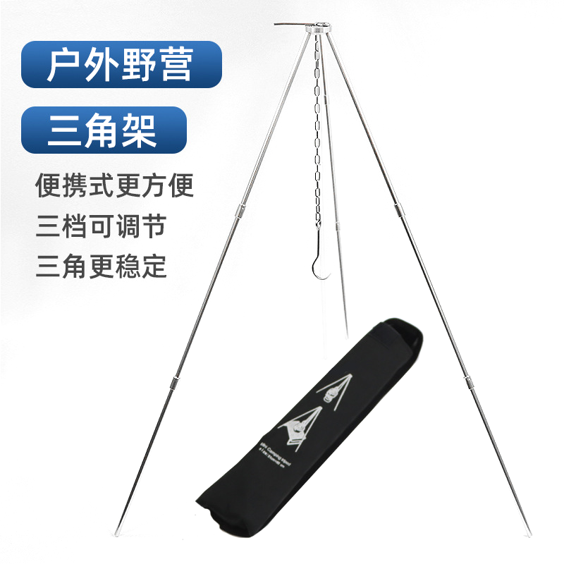 户外吊锅三脚架露营篝火架野营焚火台三角支架便携式野炊烧烤装备