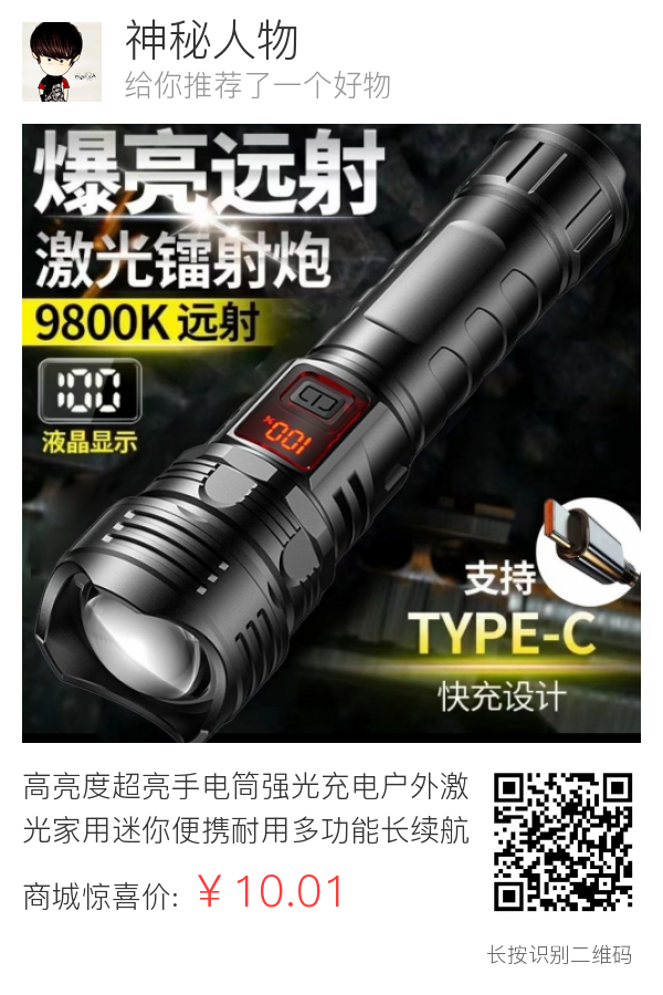 高亮度超亮手电筒强光充电户外激光家用迷你便携耐用多功能长续航