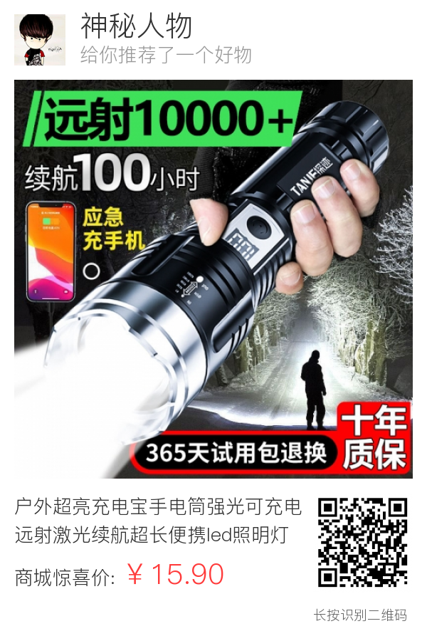 户外超亮充电宝手电筒强光可充电远射激光续航超长便携led照明灯